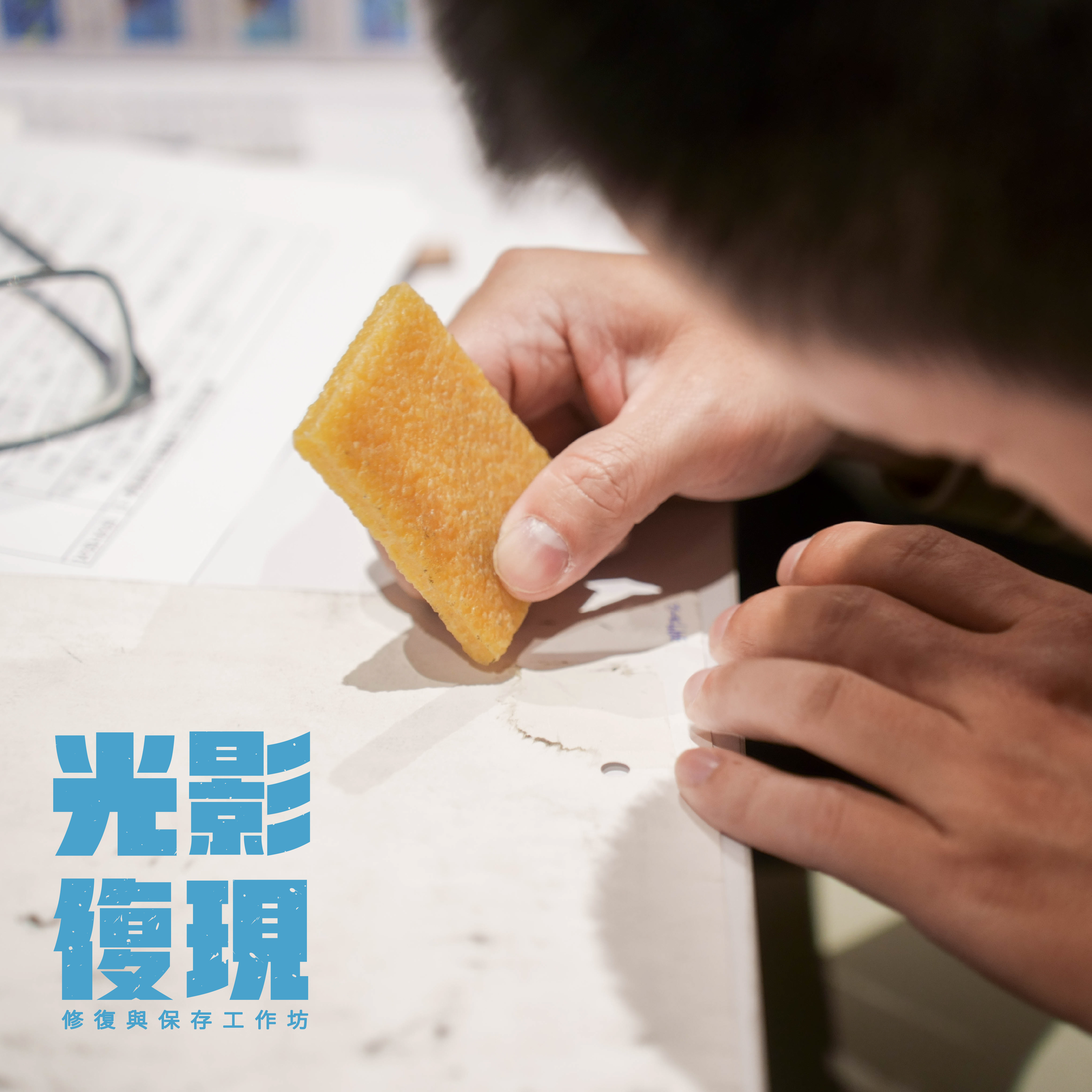 為使大眾一同了解保存文化記憶遺產的重要性,自2021年起開辦光影復現—修復與保存系列工作坊,以本中心修復與保存專業出發,帶領大家體驗媒材修復的過程。讓我們一起認識職人技術,搶救、還原珍貴的歷史檔案。